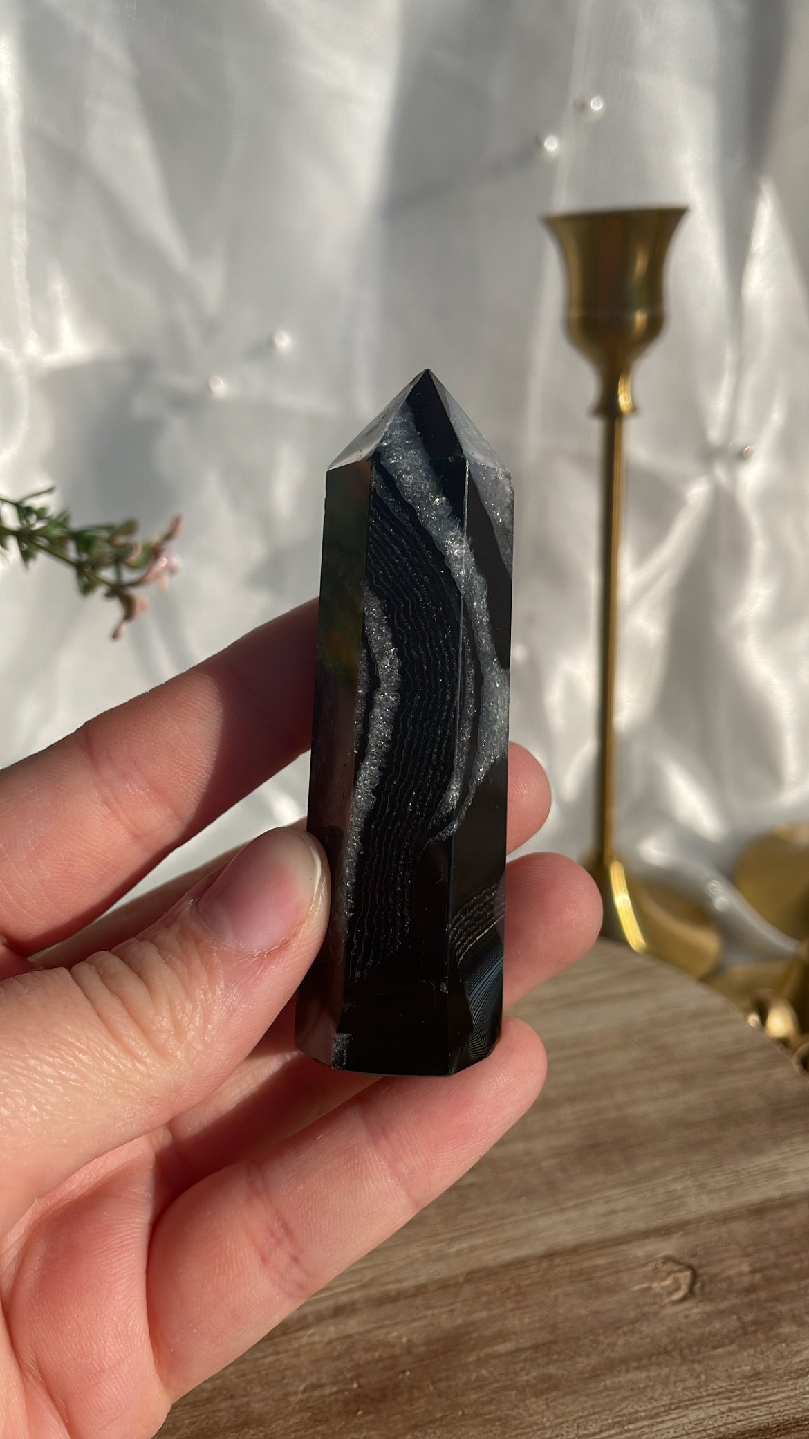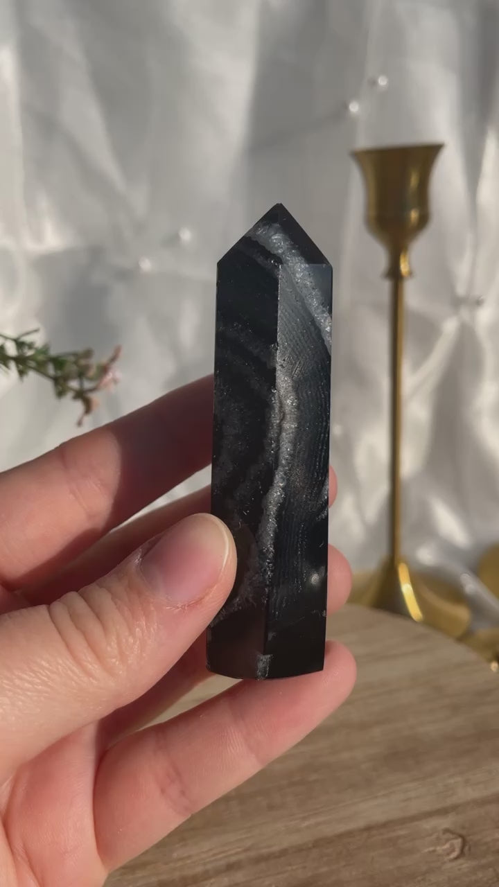 black agate is said to have multiple symbolisms. While known to promote self-confidence and courage, the stone is also symbolic of resilience and prosperity. Moreover, it represents positivity, peace and balance