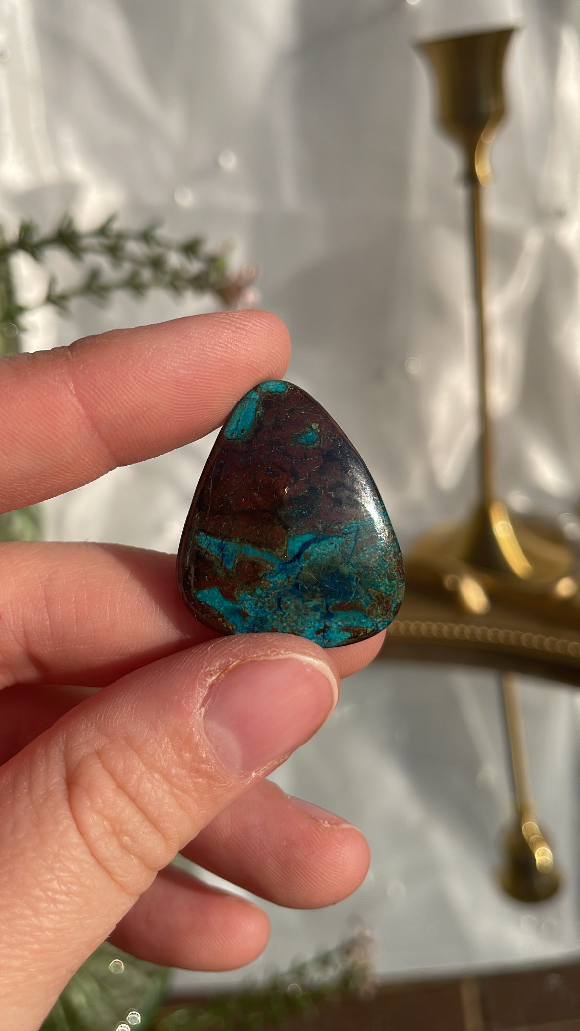 Enhance balance & communication with Azurite Chrysocolla. Calming & powerful for clearer, effective communication.
