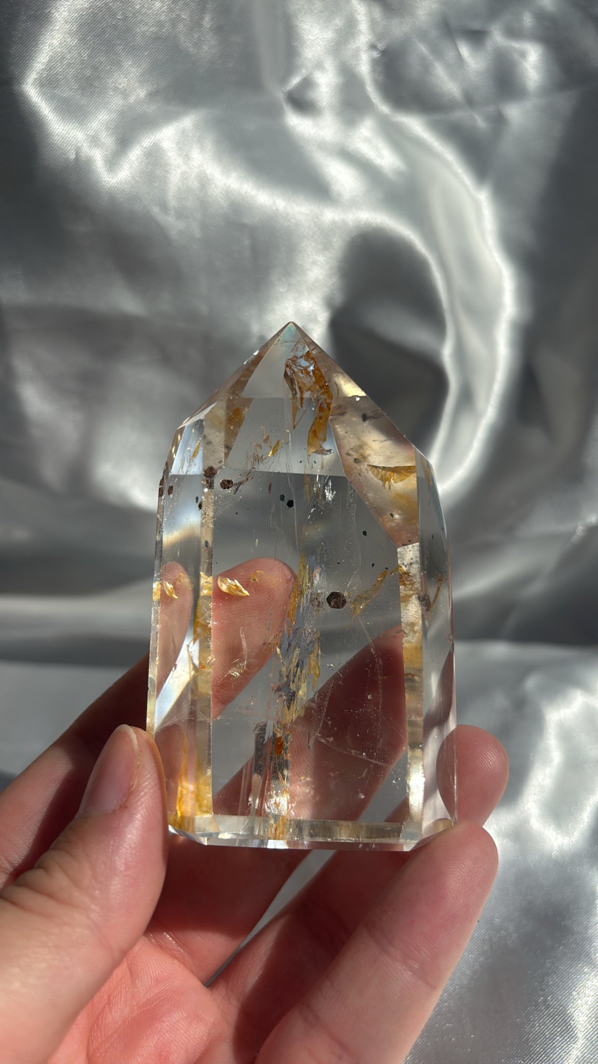 Clear Quartz With Golden Healer Inclusions With Green Tourmaline