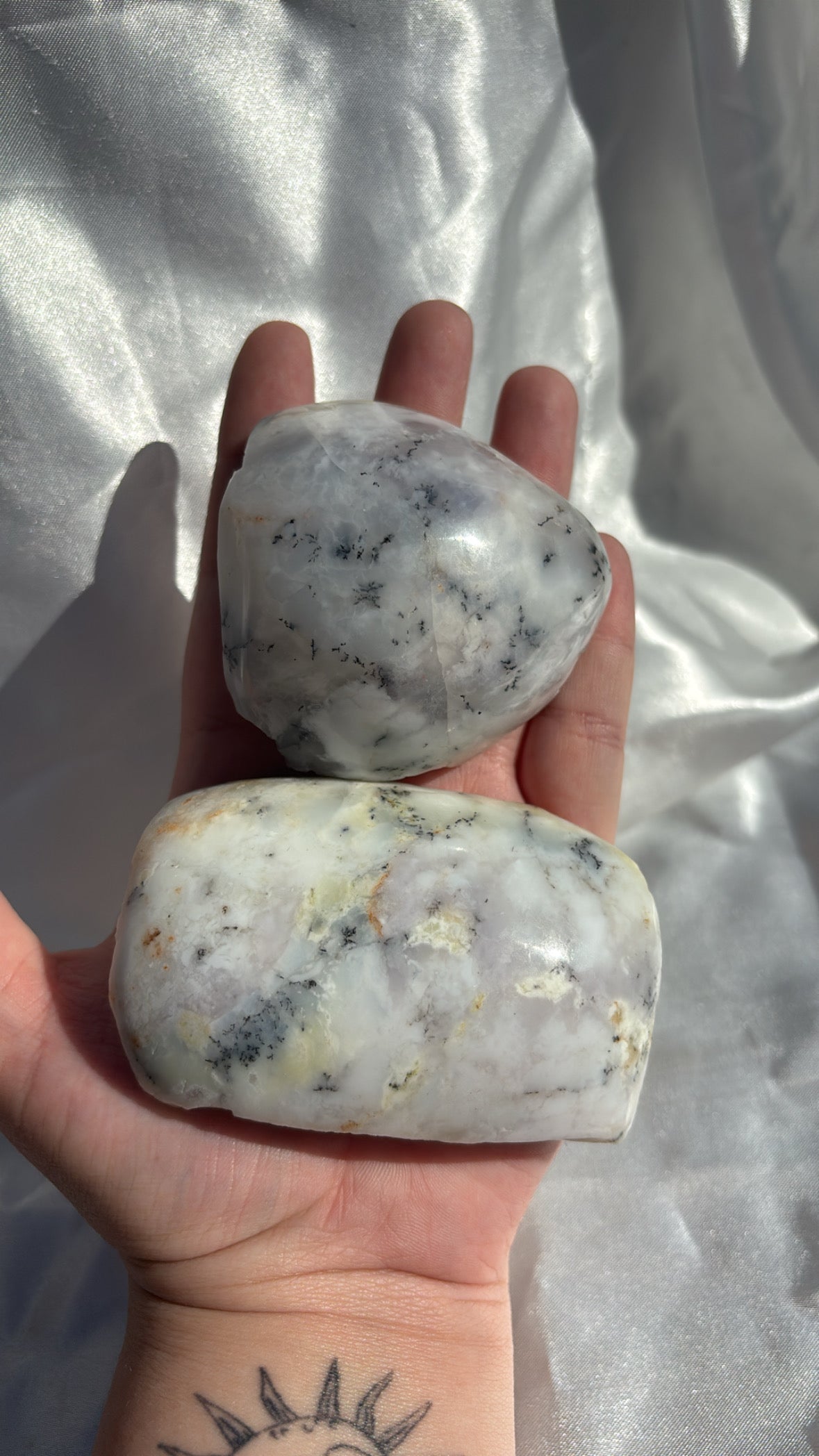 Dendritic opals symbolize balance, nature, and intuition, and have healing properties to aid in spiritual growth.