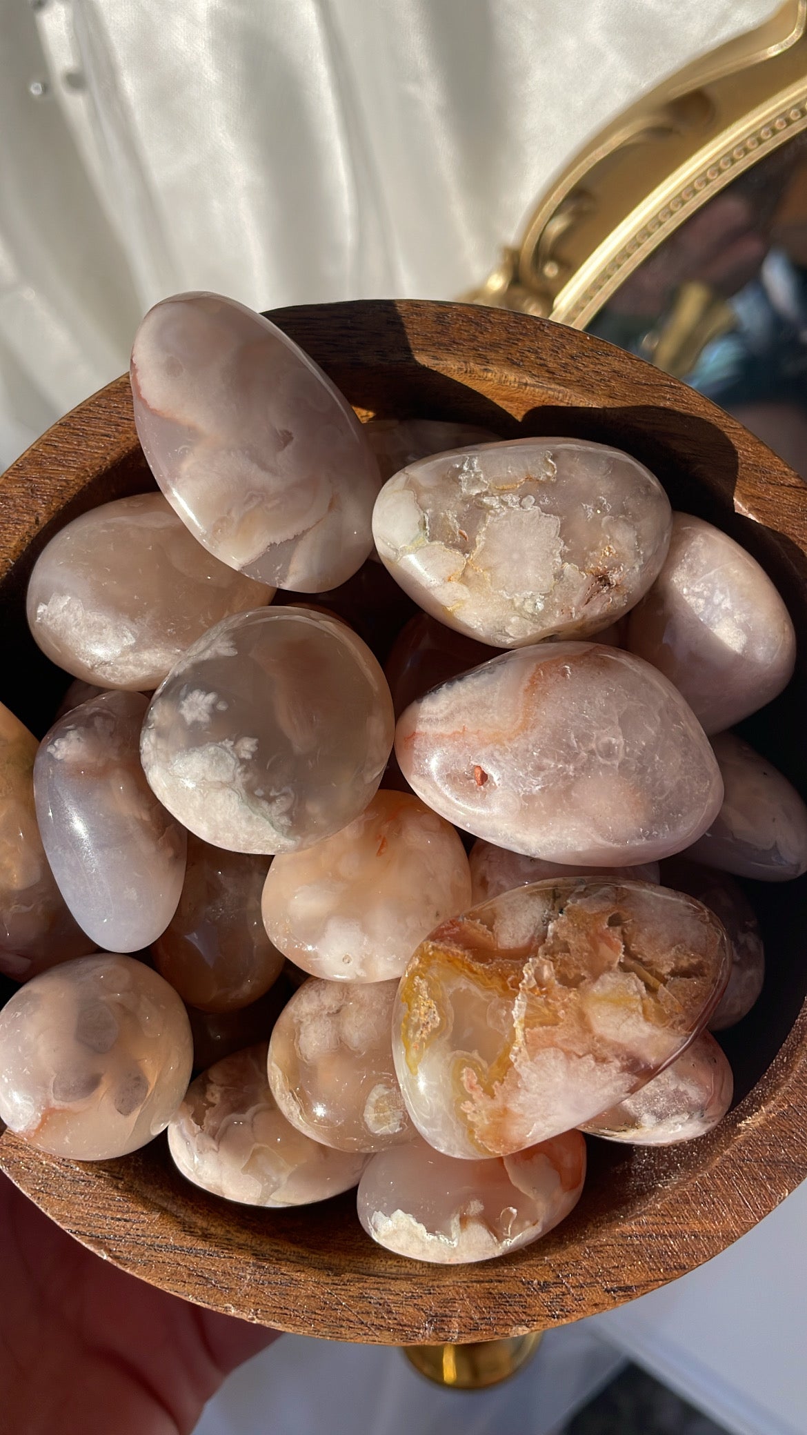 Flower Agate is a grounding stone that supports new beginnings, growth, and transformation and use it to stay centered and focused while pursuing your goals and embarking on new journeys.