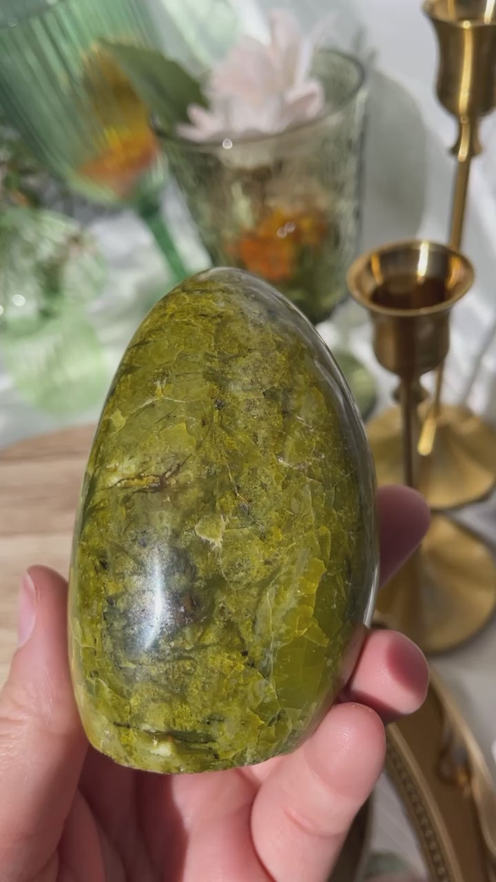 Green Opal is a stone that's all about the heart. This crystal is here to provide nourishing and rejuvenating energies to anyone struggling with emotional heartache. Its a perfect stone for anyone who may have gone through recent trauma or grief, the dissolution of a relationship, or a hurtful disagreement.