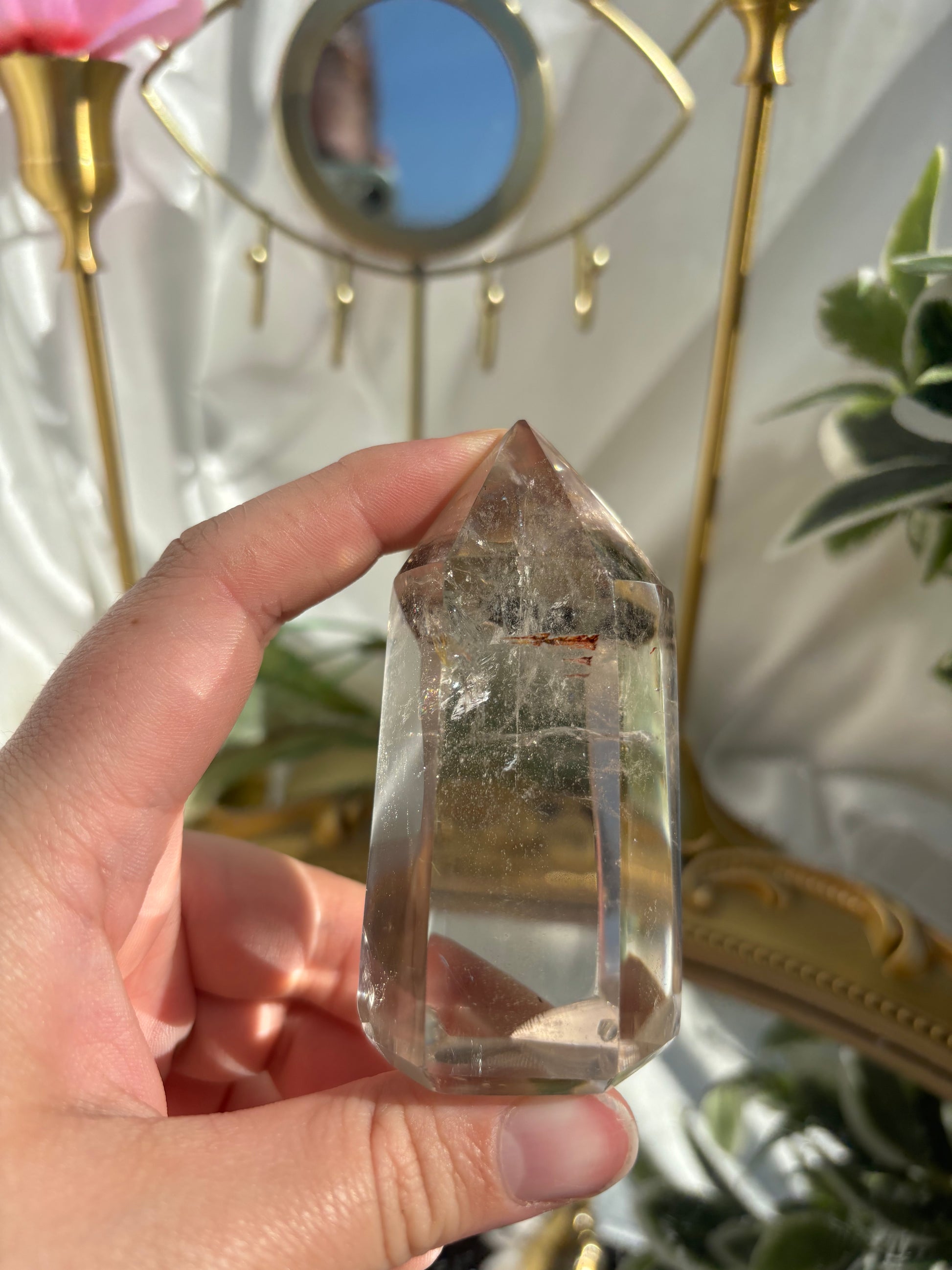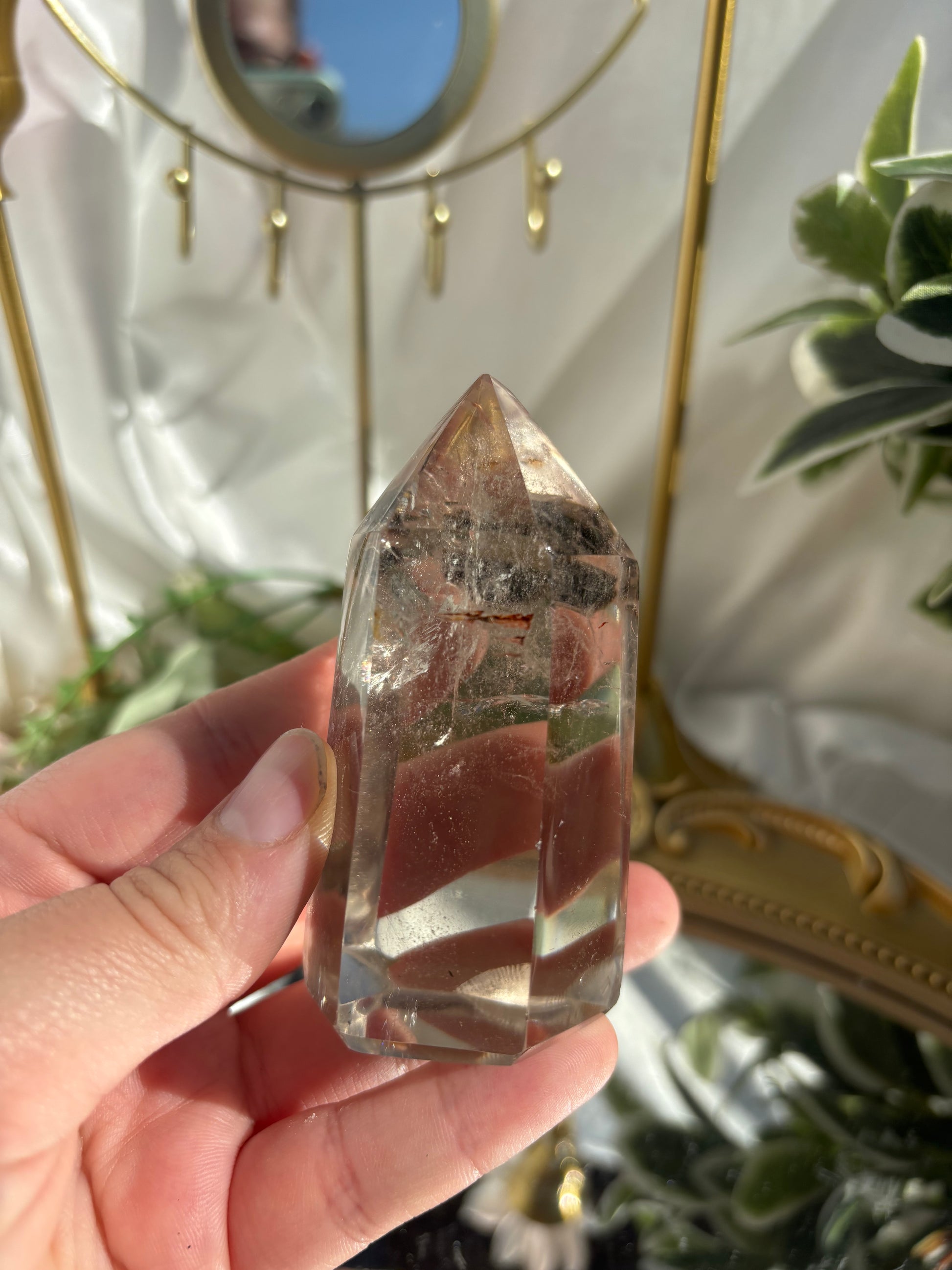 Light Smokey Quartz Point With Green Tourmaline Inclusion