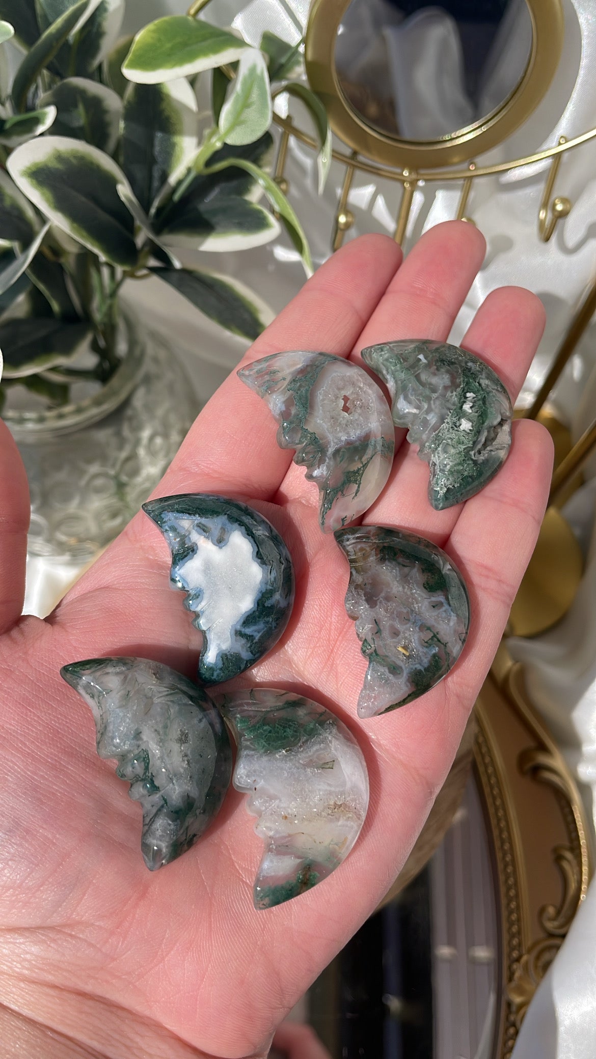 Moss Agate Moon Faces