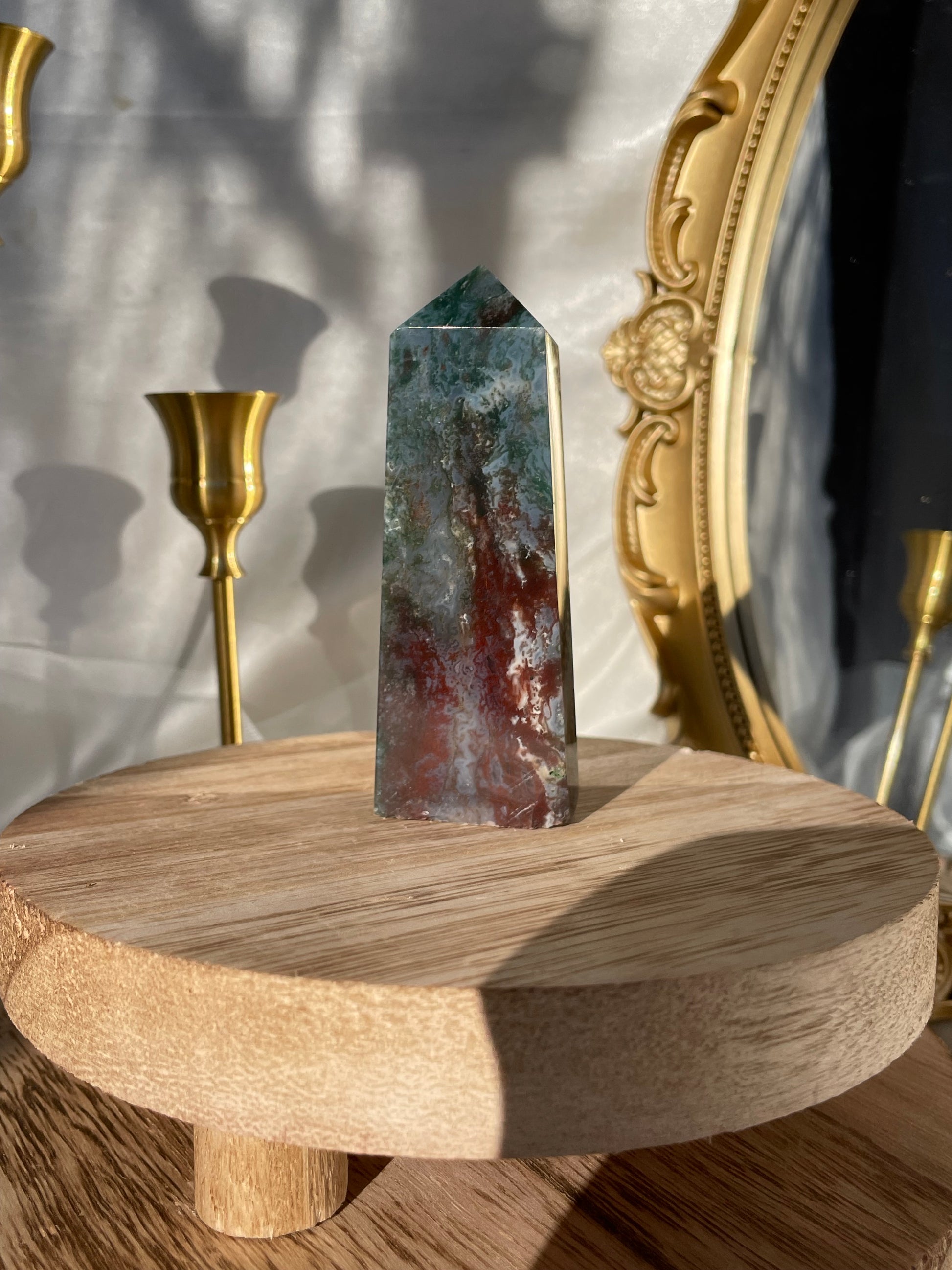 Experience new beginnings and abundance with Moss Agate, This stone promotes personal growth and boosts self-esteem.