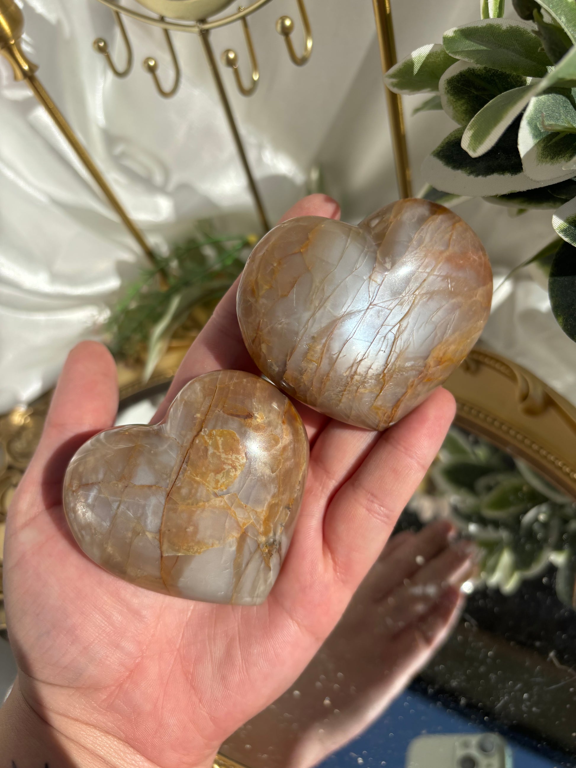 Peach Moonstone cultivates a sense of safety and a willingness to be vulnerable in a healthy relationship. It soothes, worry or anxiety, and brings out the best in people.