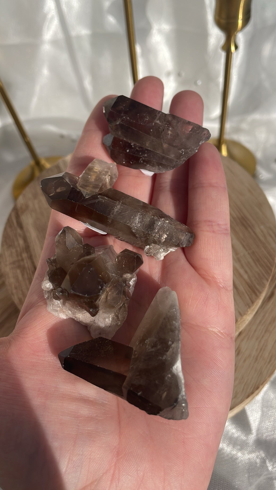 Smokey Quartz, is utilized for its grounding properties and aiding in the process of overcoming difficult or painful experiences.