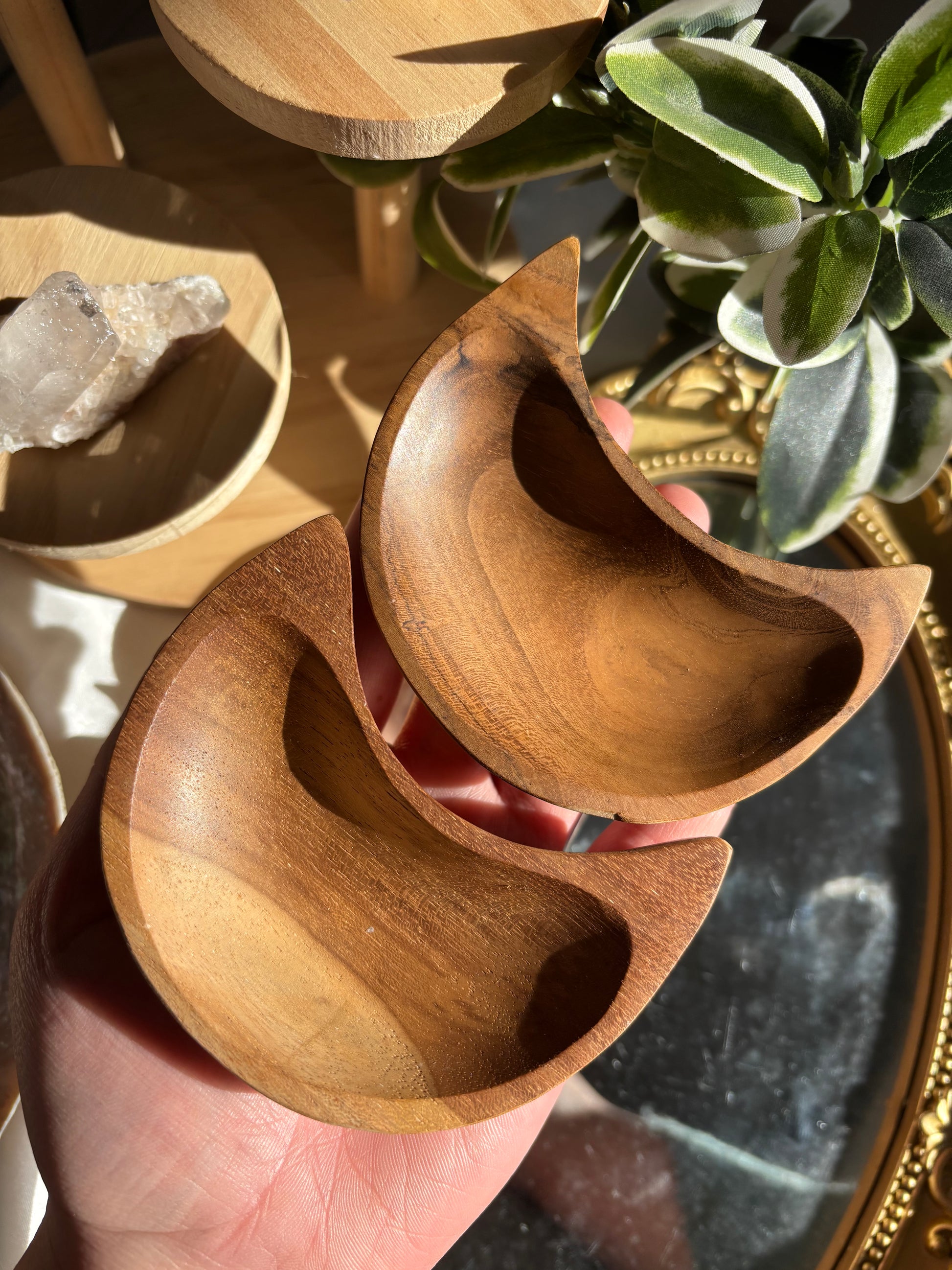 Our Wooden Moon Bowl Are Perfect To Display Your Tumbles Or Raw It’s Also Amazing To Store Your Jewellery In.